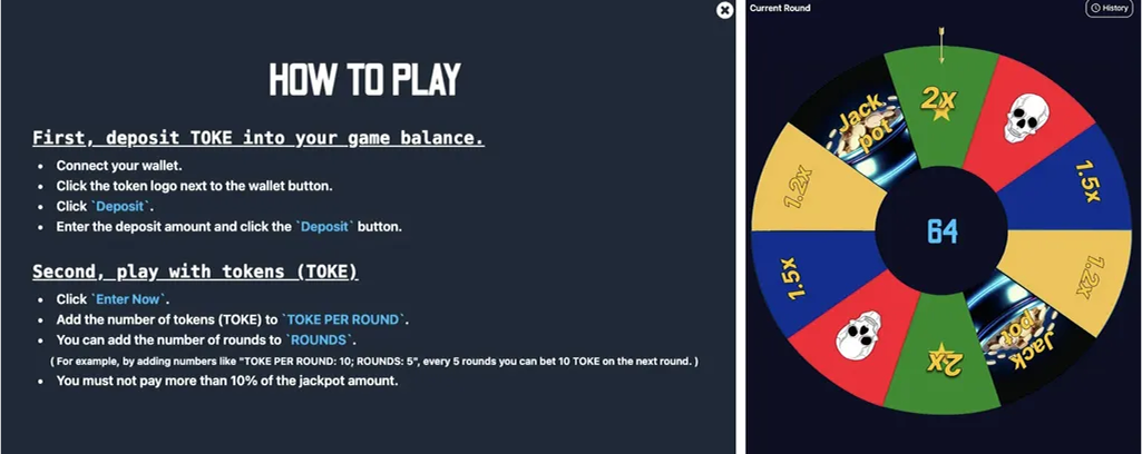 As we inched closer and closer to the Great McVote, the Wheel of TOKE V1 went live! The Wheel offered a fun, gamified approach to interacting with $TOKE. Many a times the jackpot rugged the very devs that created it and gave to the players, quite a theme we have going. This archaic initial design was further improved upon and is still a fan favorite $TOKE experience to this day. The $TOKE Machine was also back, this initial version was improved by community member Sam W. More free $TOKE for all who took a hit (100 $TOKE, then 210 $TOKE, all the way to 420 $TOKE).