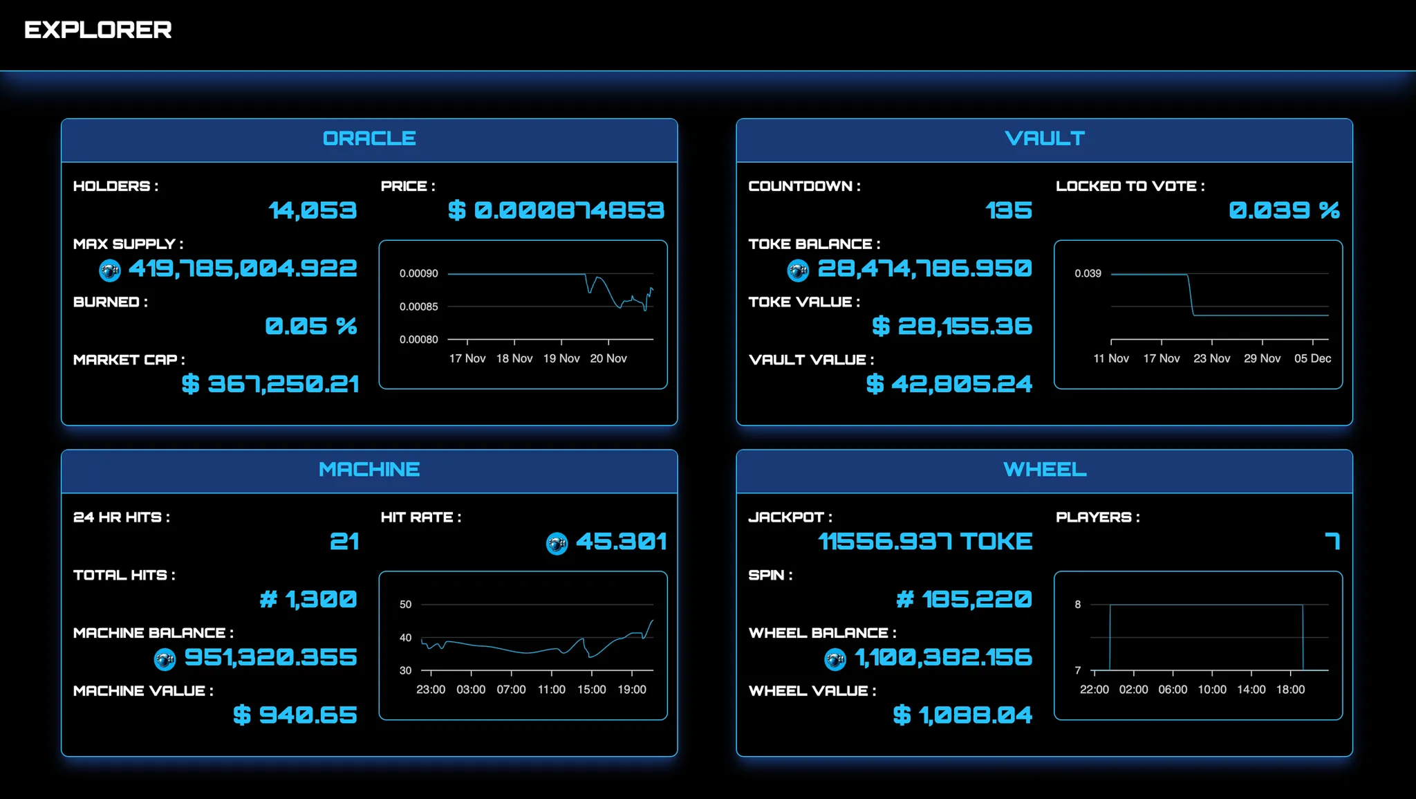 On November 20th 2024, the TOKE Explorer went live. This data aggregation tool serves as a perfect tool for all your TOKE needs. It includes information regarding the current holders (14,053), price, market cap and detailed information about The Vault, The TOKE Machine, and The Wheel. This is super useful and puts all the data in a simple-to-read format. This is yet again another example of making it easy to join the $TOKE community.