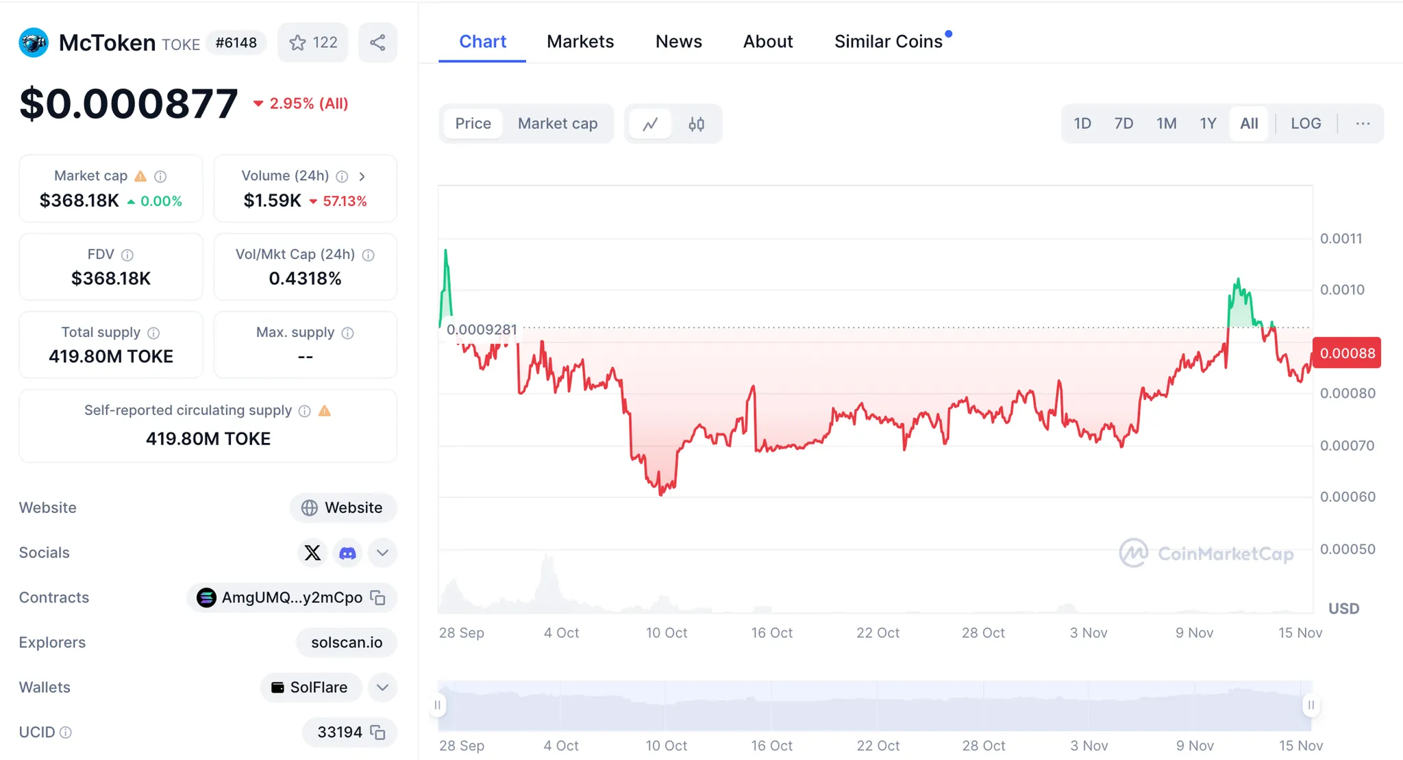 Each holder promptly received 5,915,493.393 $TOKE which granted them McWhale Status. A McWhale is someone who holds over 5,000,000 $TOKE. At the time of writing this there are 18 McWhales, and 4 of which are within wallets that remain untouched, not even holding $SOL to transfer it. The idle $TOKE accounting for 23,661,973.572. Who are these wallets? The devs ex-girlfriends or something?
