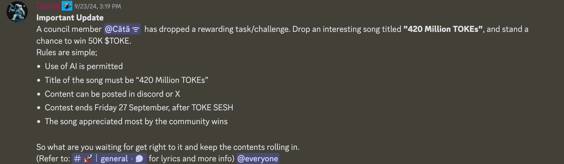 On July 7th 2024, a familiar face joined the ranks of TOKE’s team. Daniel Kruizz, TOKE OG, began helping out with announcements and operations within the TOKE community. Daniel is a long time supporter and first mover when it comes to Solana and TOKE. His presence would become quite the norm for the foreseeable future. This is yet another example exemplifying TOKE’s dedicated and ongoing community.