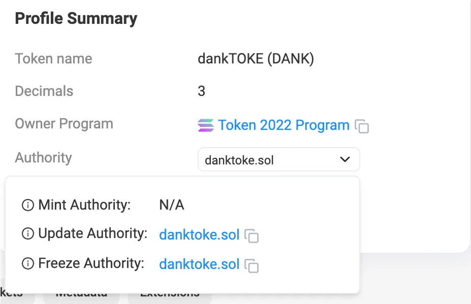 What’s even stranger is this token has a 69,000,420 max supply the inverse of $TOKE’s 420,000,069 max supply. Strangely enough, $DANK shares the unique 3 decimal units trait that $TOKE does. What’s going on here? $DANK is a Token-2022, also known as a “Super Token”. Was this the original dev? Was he testing his hand at cutting edge tech? Or are there plans for something more? Token-2022’s are very experimental and mostly used by regulatory giants to manipulate the token after minting. All we know is the authority is held by danktoke.sol and per my best attempt for an answer, I was left with this cryptic message by a Solana Veteran who will remain unnamed: